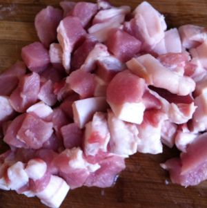 猪肉腌制15分钟以上,同时可将土豆洗净去皮切小块,大小可视口感而定,想吃烂点的就切小块一点
