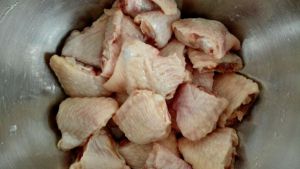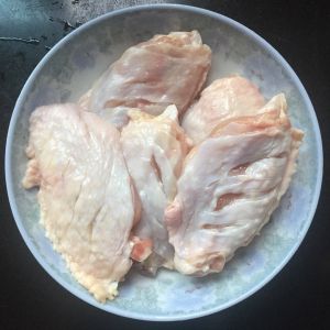 用厨房纸吸干水分,然后斩成均匀的小块儿备用,不要太小,基本一个鸡翅两块查不到