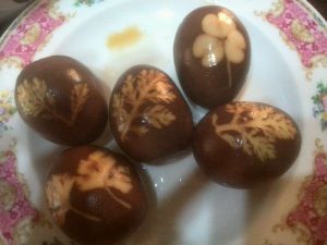 出锅后,拨开来,出现美丽的花纹。要向更入味,可在汤里浸泡一段时间。