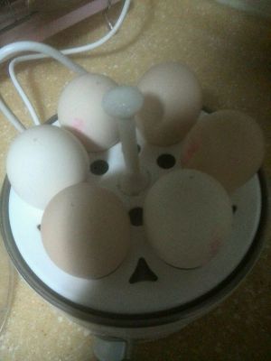 煮蛋,这一步不用多说,我用煮蛋器每个蛋上面都用煮蛋器自带针刺了小孔,这样煮熟立马浸冷水容易剥壳。