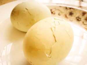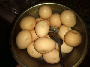 鸡蛋用清水煮6分钟后将蛋壳敲裂!