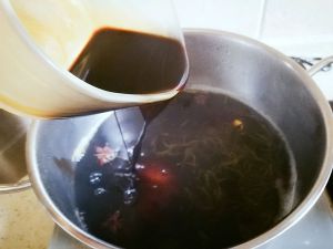 再往锅里加水,花椒,八角,茶叶,桂皮。大火煮10分钟!