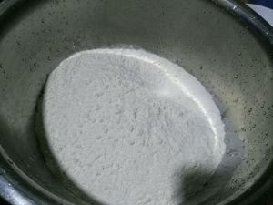 高筋面粉,加适量盐和面粉量二分之一的水,用筷子和面,比较干净利落