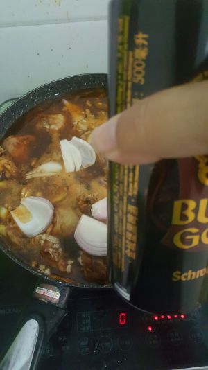 炒完之后放啤酒,因为过热,所以只要这个图。可以适当加那么一点儿点儿水。