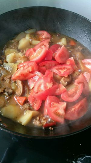 烧到土豆熟了,在下入西红柿烧五分钟。