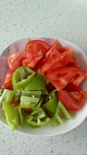 放入青红辣椒翻炒均匀,盖盖继续收汁后出锅
