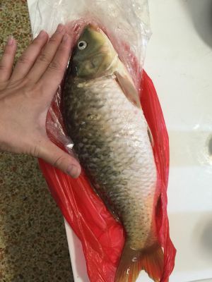 这条是他钓的最大的鲤鱼3.652斤,鱼杀起来做了一鱼两吃,鱼头鱼尾鱼骨煮豆腐汤。鱼身做了糖醋鲤鱼。