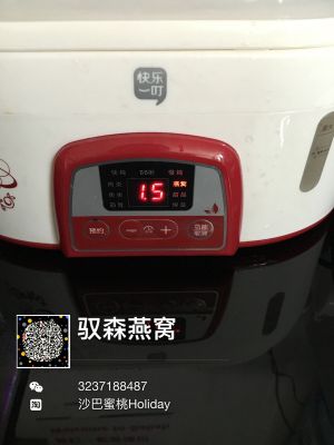 洗干净的燕窝可以入锅了。放水没过燕窝一厘米这样就好。我是调的半个小时,慢炖的话调一个小时。快要炖好时加入冰糖20克。