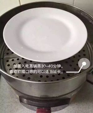 加盖入电蒸锅蒸30-40分钟。喜欢软糯的口感的可以适当延长。
