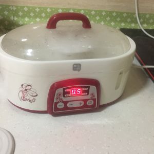 把处理完毛的燕窝放入小炖锅(水不用太多 会流失营养 )这种小炖锅一般留一个指甲高度(因为燕窝炖好会膨胀)这里我会加矿泉水炖^_^ 个人感觉会更有营养