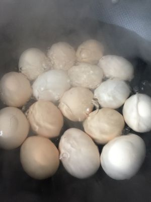 鹌鹑蛋和茶叶大火烧开,用调羹小心敲碎蛋壳。再用小火煮20分钟,关火后再泡一会!