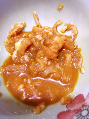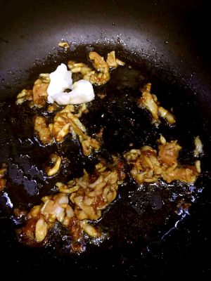 里脊肉切丝,加盐糖、鸡粉、淀粉、半个蛋清,调味腌制上浆备用;