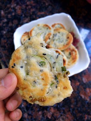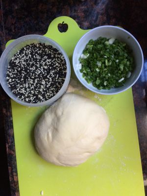 面团、葱花、芝麻(芝麻之前已经炒过的)