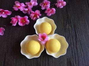 奶锅中加入打散的蛋黄 小火不停搅拌直至粘稠 放入冰箱冷藏降温