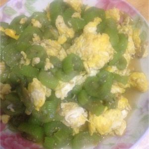 待丝瓜软了就差不多熟悉了,倒入炒好的鸡蛋一起翻炒