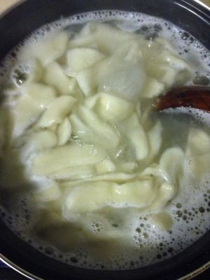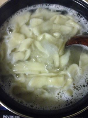 差不多炒几下,然后加水,以后加入挂面,鸡蛋,紫菜……然后煮煮煮