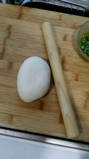 和面,我做的汤面,少量开水,一边搅拌面粉一边加少量热水,最后揉成面团,盖上保鲜膜,省面二十分钟。这个时候我去准备香葱