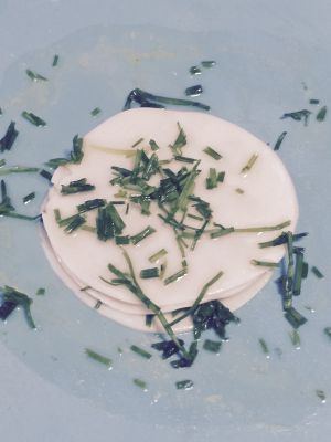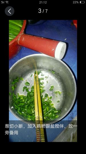 葱切小断,加入鸡粉跟盐搅伴,放一旁备用