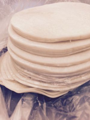 把醒发好软面团(面团一定不要太硬哦)做成大的面剂子,并且擀成较薄的圆饼。