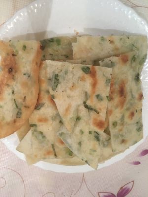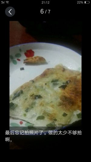 出锅啦~超级香脆哦!!不爱吃葱的人也会爱上的葱油饼!!以上分量做了5块葱油饼