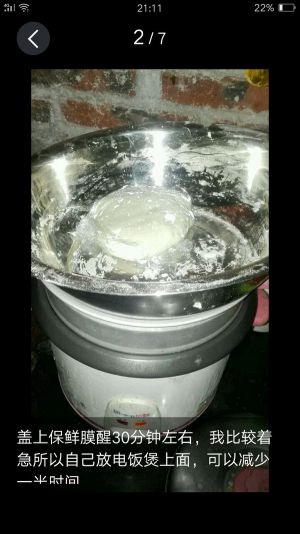 盖上保鲜膜醒30分钟左右,我比较着急所以自己放电饭煲上面,可以减少一半时间