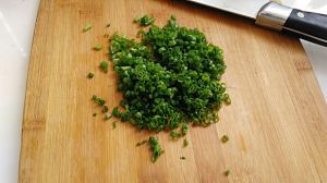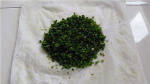 1.先将香葱的叶子洗净,晾干水份,切成粒
