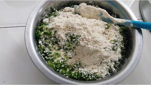 将面粉倒入盆中和盐拌均匀,缓缓倒入开水,用筷子拌匀,待温度降下来后用手揉成光滑的面团;用湿布盖在面表静置30分钟左右备用