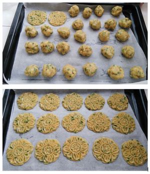 香喷喷的香葱饼干出炉后,放凉到手有余温的时候可以装袋了
