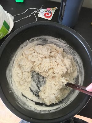 6.把所有的原料一起混合好,和成面团(如果太干了建议加鸡蛋液)