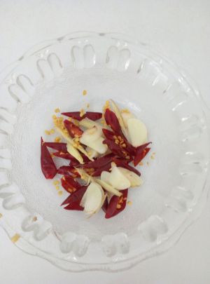 豆腐皮切块平铺在盘底,我没有放豆腐皮,忘记买了…大葱切丝平铺在豆腐皮上备用。不喜欢吃豆腐皮的可省略。