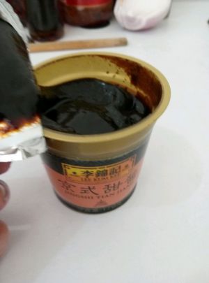 锅底放少量油烧热,将一袋甜面酱加入翻炒,再加入焯好的肉丝大火翻炒。酱和肉丝炒匀后即可关火出锅。