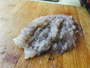虾用刀背剁成虾泥