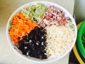 木耳、胡萝卜、藕、香肠、莴笋切成小丁备用