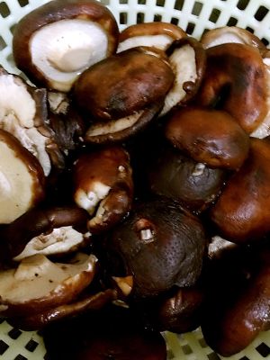 香菇去根洗净,沸水烫一下。