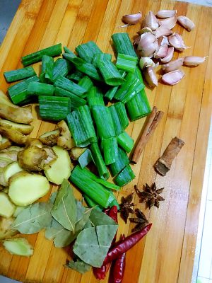 葱姜蒜炝锅放入香菇煸炒,加入水,盐,蚝油,生抽等调味品熬成卤出锅备用。