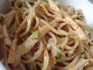 装上一碟调好的酱汁,鸡丝凉面就完成了