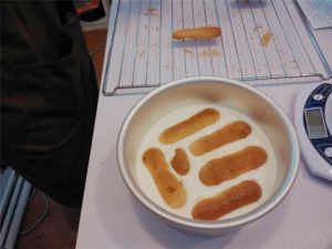 再放一层浸满咖啡酒的手指饼干。