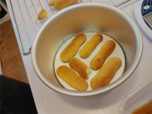 再用手指饼干蘸取咖啡甜酒铺一层。
