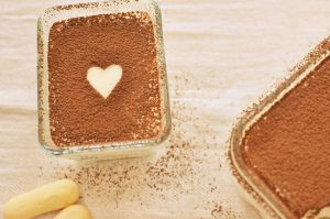 冷藏后的提拉米苏表面可以撒一层可可粉。