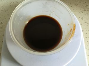 制作咖啡溶液。速溶咖啡用开水拌匀,倒入咖啡酒即可。