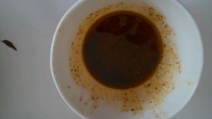 用孜然粉,十三香、胡椒粉和玉米油兑成料汁,如果吃得辣,可以加辣椒面哈
