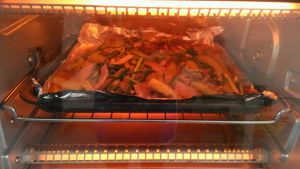 放完配菜烤两分钟左右,一道美味的烤鱼就完成了