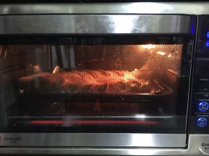 腌好后放入烤盘烘烤,上下火200,25分钟。