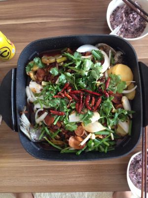 做法跟上一道香辣烤鱼基本相似,我就懒得重复了,我用的是四川的酸菜,就是做酸菜鱼的酸菜,酸菜清洗一下切小段,豆豉,杭椒,锅内到一点底油,花椒葱段爆香加入酸菜煸炒记得酸菜一定要炒出香味来在放豆豉和杭椒段差不多就出锅倒入鱼锅即可,吃这样的锅最好用酒精炉或者电磁炉小火咕嘟这吃,这样就会把所有的食材味道都逼出来,自然就香了,好了就这样吧!试试吧!
