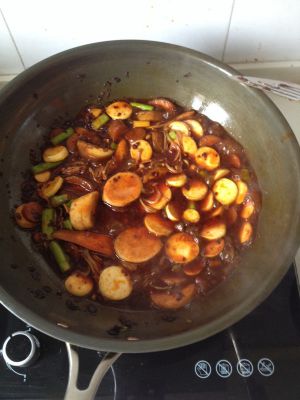放油,调料,豆豉,把配菜炒半熟入味即可~
