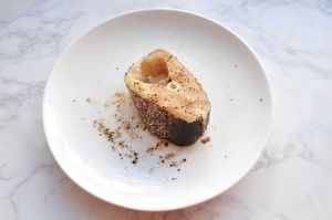 鱼段用少许盐和黑胡椒轻轻抹匀,腌制十分钟以上。
