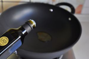 烤箱开始预热,上下管180度。同时,在锅中倒入少许橄榄油。