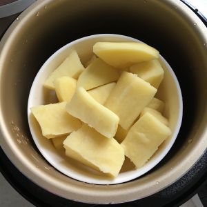 土豆去皮切块上锅蒸熟;(当然用水煮熟也可以了)