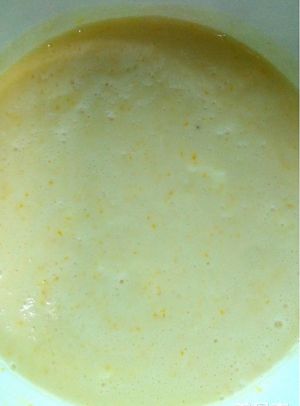 牛奶加细砂糖,完全溶解后,加淡奶油,蛋黄和低粉拌匀,过筛