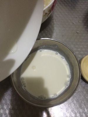 蛋黄、低筋面粉和之前搅拌均匀的奶液搅拌充分,用滤网滤过,蛋挞液就准备好了